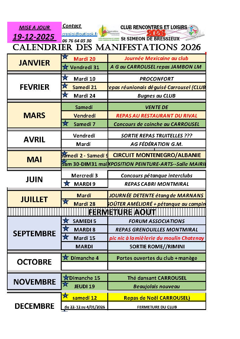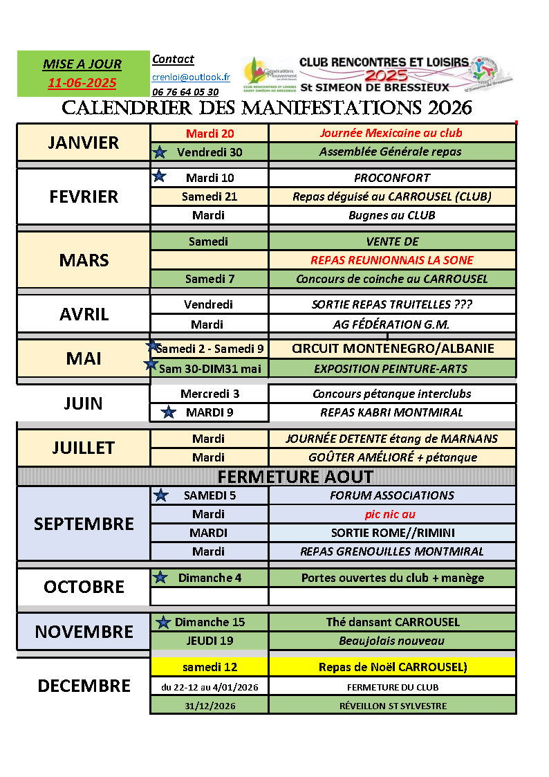 CALENDRIER PREVISIONNEL A COMPLETER ÉVENEMENTS 2026